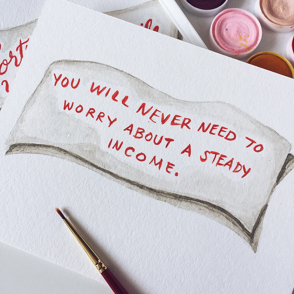 As creatives/artists/designers/independent 'anything', we can admit that the certainty of where our next paycheck will come is always top of mind. It has been a process for me to let go of past mindsets about money, for sure, but little hints like this help keep me at peace.