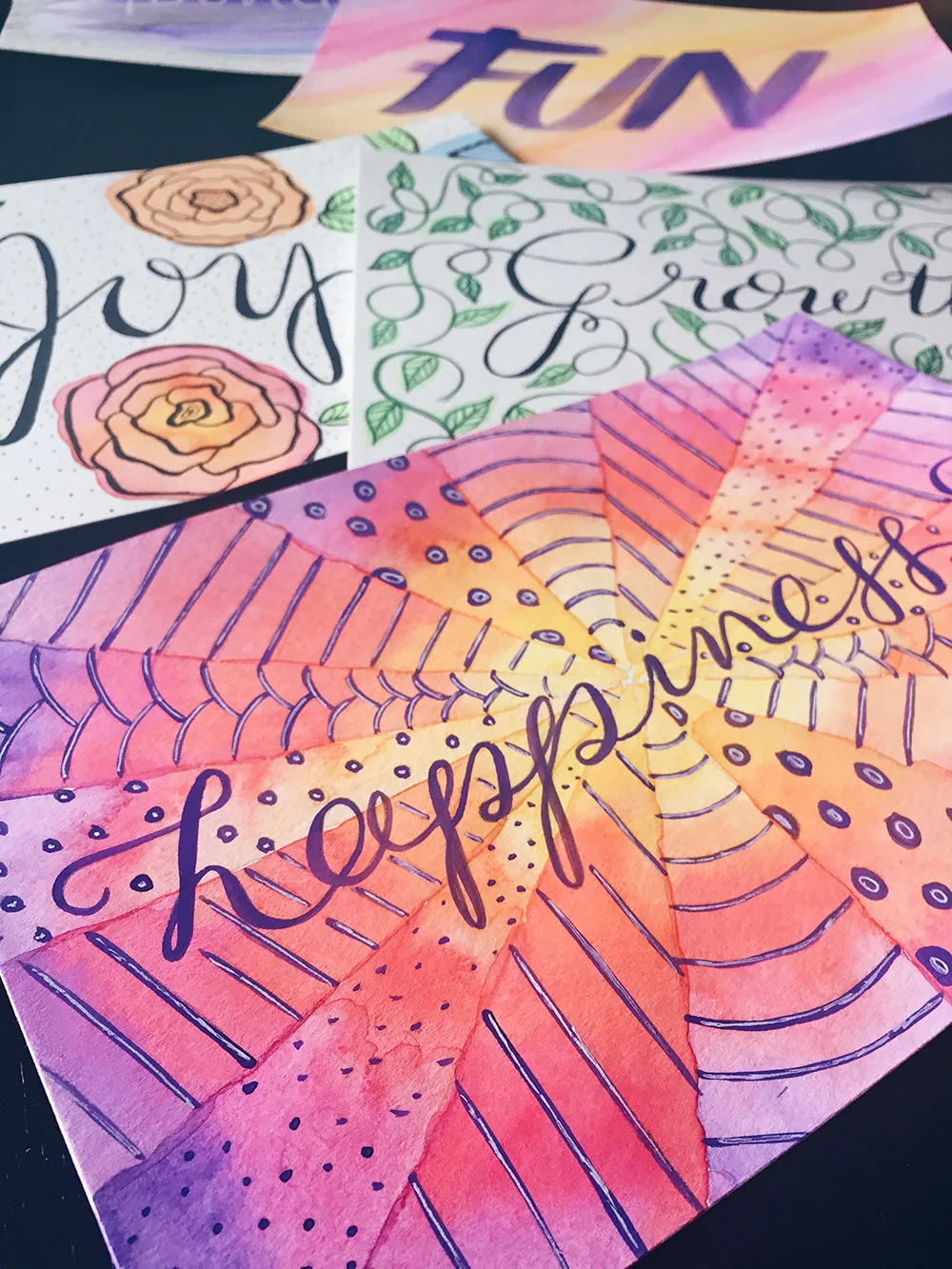 It was fun going through a few creative processes I’ve been learning with watercolors and lettering to showcase a few of the words I’ve chosen in years past.